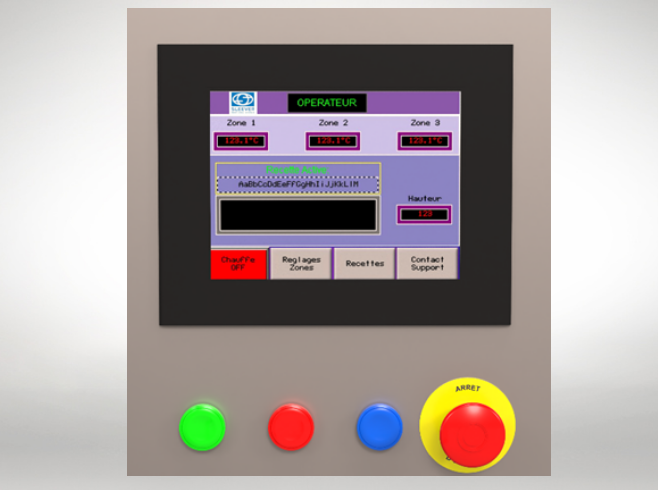 La température et le positionnement sont configurables sur l’IHM en fonction de la vitesse de ligne.
